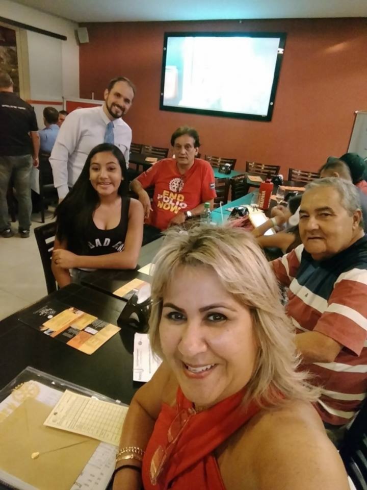 Tivemos a presença da jovem Victoria Araújo Bensdorp que acompanhada de sua mãe ouviu atentamente a palestra . Ela é uma de nossos representantes no RYLA da baixada