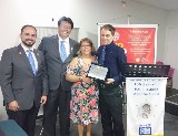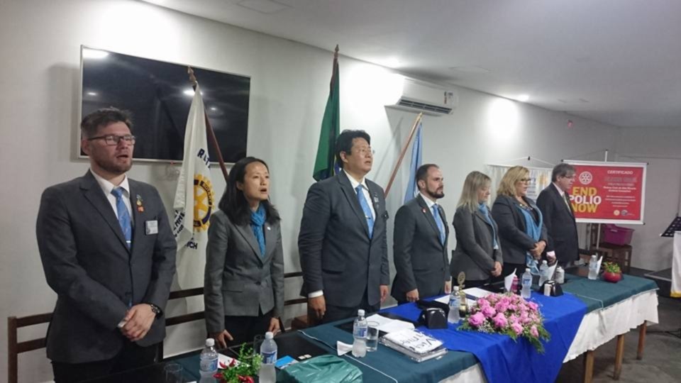Recebemos no dia 22 de fevereiro a visita oficial do governador Takata com sua esposa Marie que iciciou suas atividades indo conhecer nosso projeto Informatica , Iniciação para Inserção Social na Associação Irmã Dolores onde o casal pode observar todas as atividades desenvolvidas para a comunidade e participou de uma auda da padaria da unidade. Viu os computadores e máquinas doas por nosso clube, Foi uma visita muito proveitosa e esclarecedora. Depois tivemos as reuniões programadas e a Festiva em comemoração à visita, ao 113 anos de RI e ao 14 aniversário de nosso clube. A homenagem prestada ao companheiro Marcos Henrique Bento por seu trabalho no Banco de óculos, à Professora Luciana Oliveira Zima por sua atividade e ao companheiro Rodrigo Sertek com seu TPH encerraram as atividades da noite. O bolo comemorativo deu o ar de alegria e felicidades da noite.
