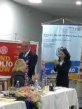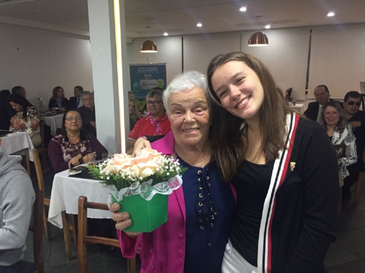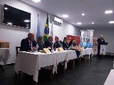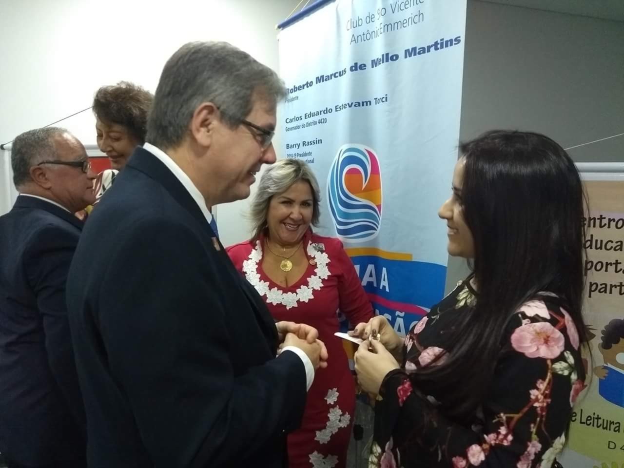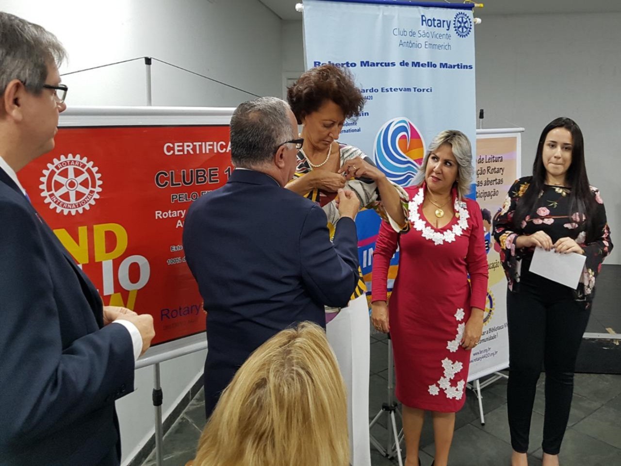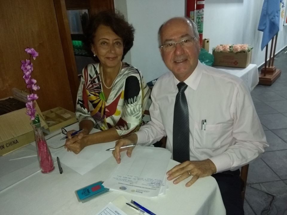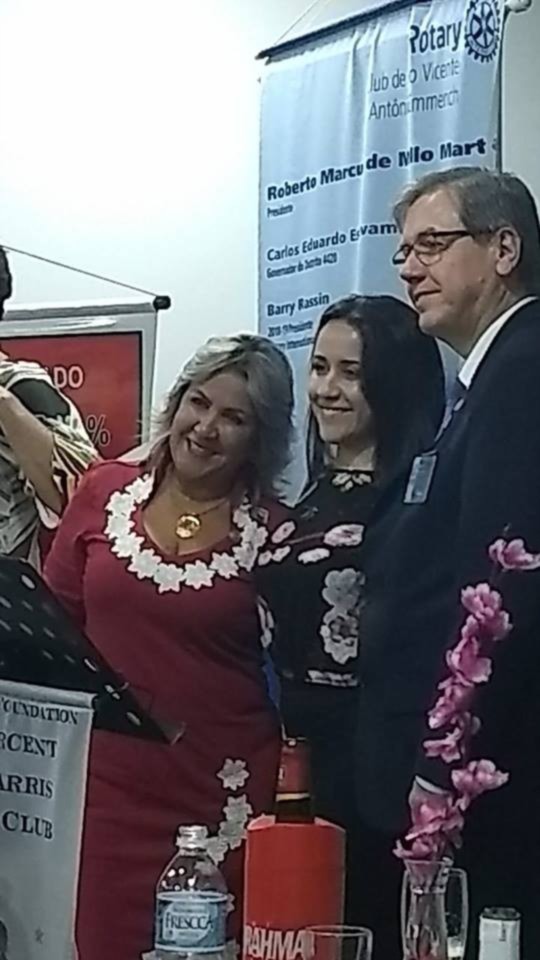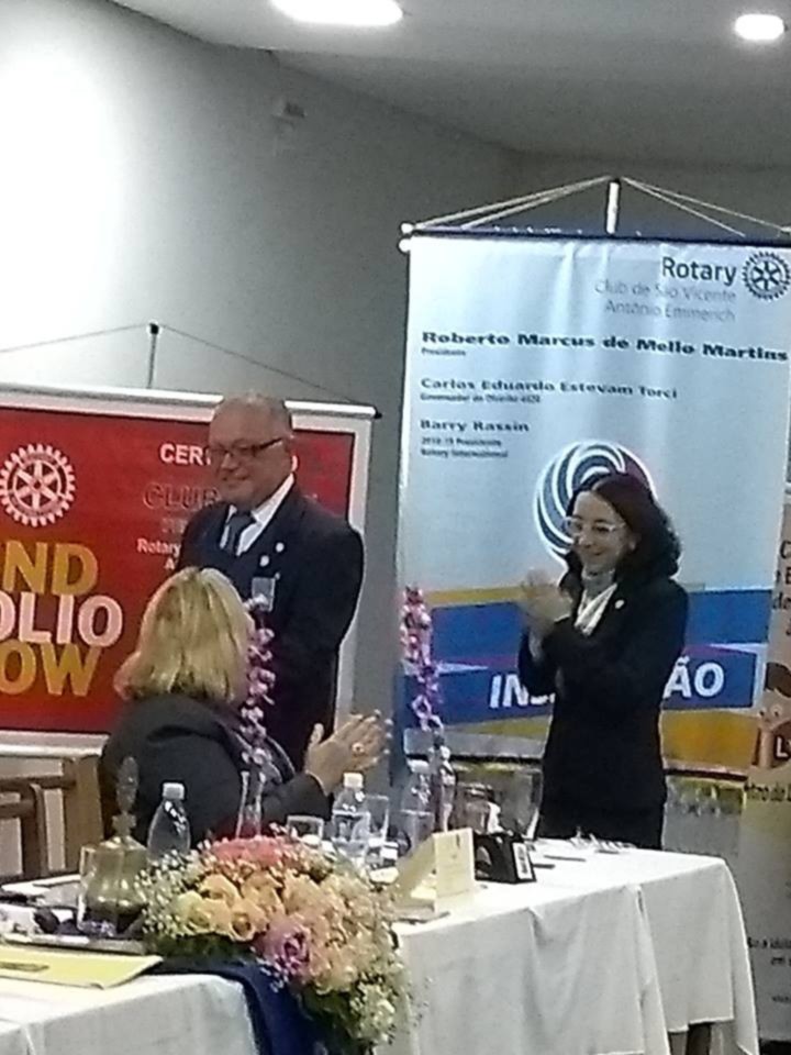 A Festiva de Transmissão e Posse da Gestão 2018-19 teve a presença de 82 rotarianos, convidados e muita emoção do presidente Roberto Martins. Estiveram presentes os governadores Fernando Dias Sobrinho 2011-12 e Ronaldo Varella 2016-17 além dos presidentes Inspiradores Fredy da Silva Rodrigues(SVicente) com 07 socios, Regina Lucia de Carvalho com seu cônjuge e companheiro Regis Carvalho(Santos-Ponta da Praia), Roberto João(Cubatão) com 05 socios, Leandro Guedes e Susy Guedes(SV-Praia) com 09 socios, Thiago Rodrigues de Carvalho e Regina(Cubatão Jardim Casqueiro) com 02 socios , Renato Luiz de Jesus( Santos-Vila Belmiro) com 02 socios, Aderbal Boneto e Lenir (Bertioga -Canal) com GA Elaine e Hamilton, Andre Santos Cara(Santos-Gonzaga) além do instrutor Distrital Algo Gaspar e sua esposa Anacelia. O assessor parlamentar do deputado estadual Caio França também esteve presente e a representante da Instituição Irmã Dolores Cleuza Coelho Silva e seu cônjuge Francisco. A Sra.Maria Martha mãe do presidente Roberto bem como os filhos do presidente Roberta e Ricardo além da neta Maria Luiza abrilhantaram a festiva. Na mesa presidencial estavam o presidente 2018-19 Andre Lasse com sua esposa Daniela Cid, o presidente Roberto, o Governador do distrito 4420 2018-19 Carlos Eduardo Estevan Torci e sua esposa Sonia Mara além dos presidentes Fredy representando todos os presidentes Inspiradores e a presidente Julia Mara representando os presidentes 2017-18 . As duas novas sócias Teresa e Raissa que leu o compromisso rotário ficaram felizes com sua admissão em uma grande reunião. Uma bela festa. Os socios Edson, Douglas, João, Ireni, Toshio, Ester, Ricardo, Wagner, Tatiana, Kleber, Henry com a esposa Alessandra,Carmem, Silva e Meire estavam orgulhosos de tantos convidados. A sócia Bruna que esta em curso no exterior nos transmitiu uma grande energia, obrigado.A alegria dos dois presidentes Andre e Roberto foi contagiante!
