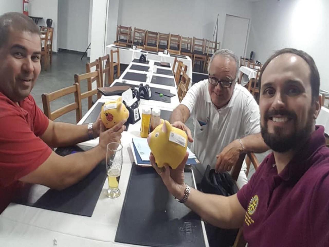 A primeira reunião da gestão Inspiradora 2018-19 foi muito alegre e descontraída com a entrega dos certificados de admissão de novas sócias à Teresa e a Raissa além do impresso da Prova Quadrupla. Em seguida o presidente Roberto fez a distribuiçao a cada um dos sócios do cofrinho de contribuição à Fundação Rotária e do cartão de doação eletrônico mensal,duas formas de incentivar a participação dos companheiros. Os nossos Kids Heitor e Lucca já participaram do início das doações. Belo início. As reuniões sem palestrantes terão um formato mais informal e foi uma das grandes decisões do CD 2018-19