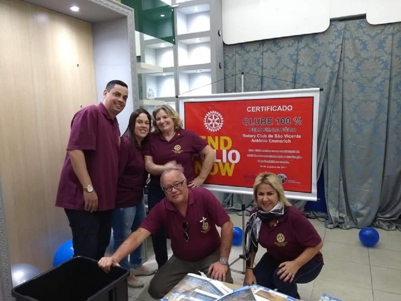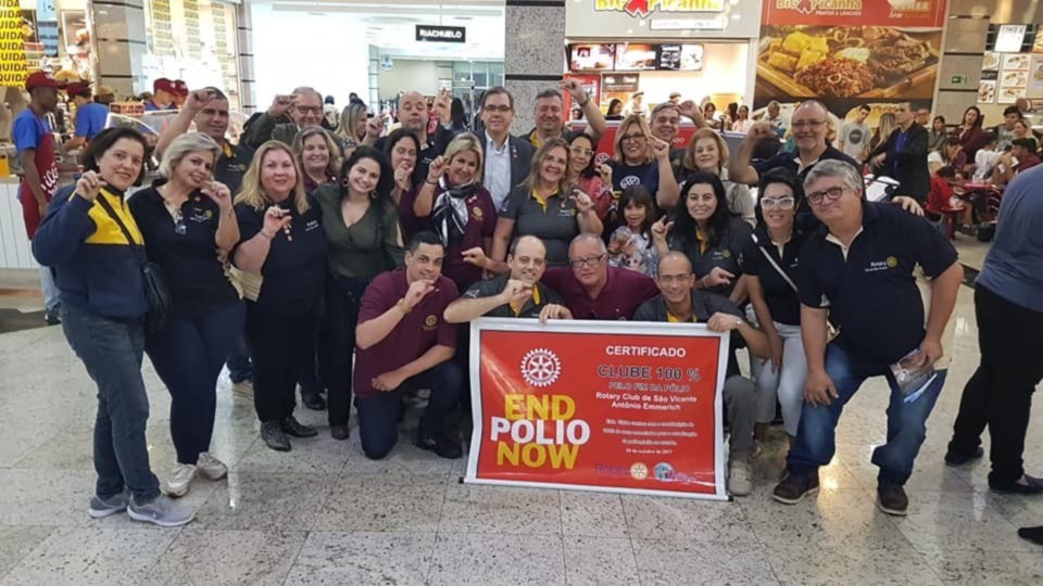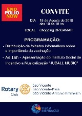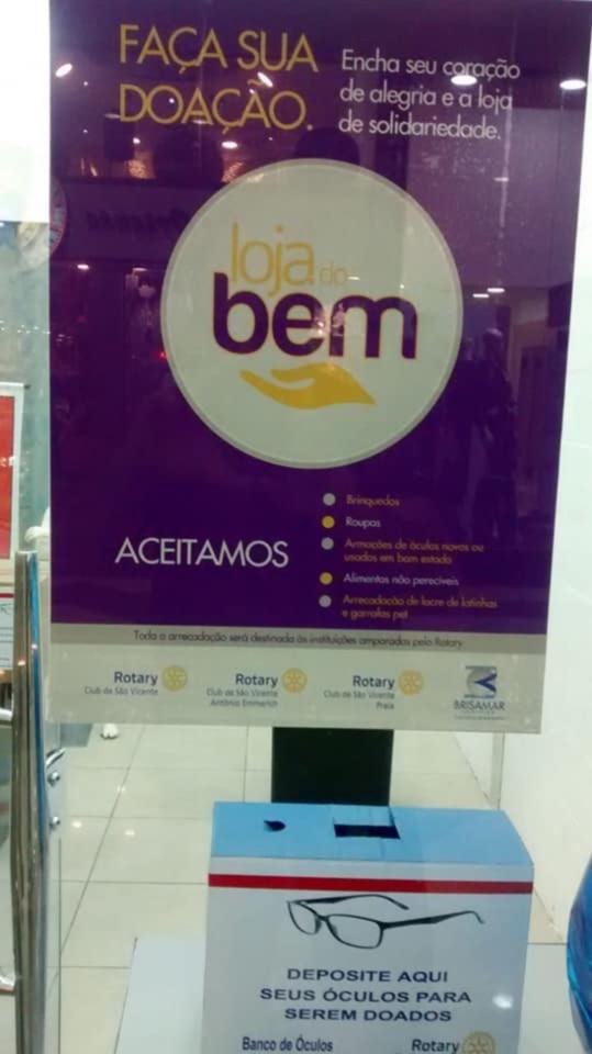 Os 03 Rotary Clubs de nossa cidade, São Vicente, São Vicente Praia e São Vicente Antônio Emmerich realizaram em parceria com o Brisamar Shopping um evento com a intenção de conscientizar a população vicentina da importância da vacinação contra a poliomielite e o sarampo , vieram nos ajudar a orquestra das crianças do maestro William que tem um maravilhoso projeto social ! Tudo lindo , maravilhoso ilustrado com músicas populares sendo que o público presente adorou a musicalidade dos jovens! os companheiros de nosso clube presentes foram: Meire, Raissa, Kleber,Tatiana,Carmem e o Kids Heitor. A integração com os companheiros dos outros clubes de nossa cidade foi perfeita. Obrigado a todos e MUITO OBRIGADO Karol Ramaciotti por tornar possível este grandioso evento com a presença do Governador Distrital Carlos Torci sua querida esposa Sonia Mara. Aos presidentes Leandro e Susu, Freddy e ao GA Soeiro e a todos os outros companheiros da área que estiveram presentes nosso muito obrigado. Ao Imagem Publica da Governadoria Companheiro Marcelino nosso obrigadão! Ativamos A Loja do Bem onde receberemos brinquedos novos e usados, armações de óculos, roupas usadas, lacres de latinhas e garrafas pets. Só alegria!