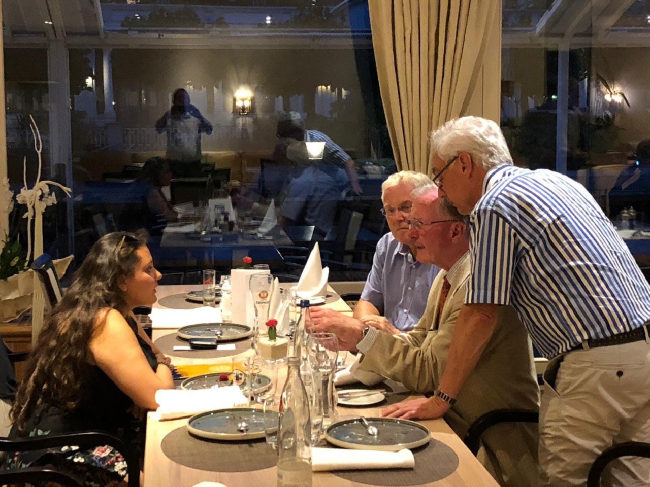 A nossa sócia e ex- intercâmbista Bruna Marina esteve no dia 12 de setembro visitando os companheiros do nosso clube parceiro na Alemanha RC Bad Neuenahr no Distrito 1810 onde teve a oportunidade de realizar a entrega de uma flamula de nosso clube ao atual presidente do clube e de mostrar o video da inauguração de nosso projeto na Instituição Irmã Dolores. Na foto os companheiros assistindo ao vídeo.