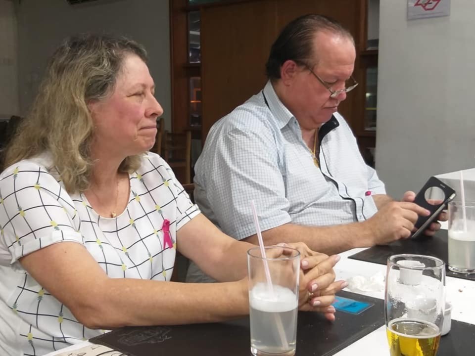 A companheira Meire falou sobre a nossa participação na confecção de almofadas para mulheres em tratamento de câncer de mama. Os companheiros Tatiana e Kleber receberam seu certificado de presença 100 juntamente com seu filho Heitor.