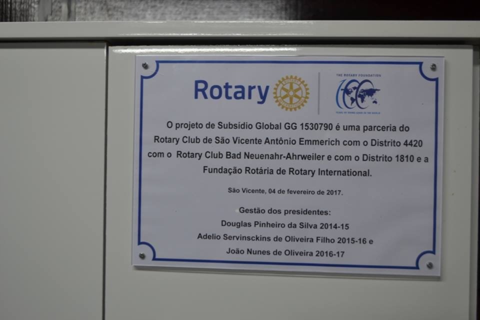 Neste noite recebemos uma grande noticia de que nosso Projeto de Susbsidio Global foi aceito e finalizado na Fundação Rotária. Um projeto que teve início na gestão do companheiro Douglas Pinheiro da Silva 2014-15 atravessou as gestões 2015-16, 2016-17, 2017-18 sendo agora finalizada na gestão 2018-19 dentro dos parâmetros da Fundação Rotária. Parabéns a todos os companheiros que se empenharam na pesquisa, compra e instalação de todos os equipamentos. Um grande trabalho da equipe do Rotary Club de São Vicente Antônio Emmerich para nossa comunidade.