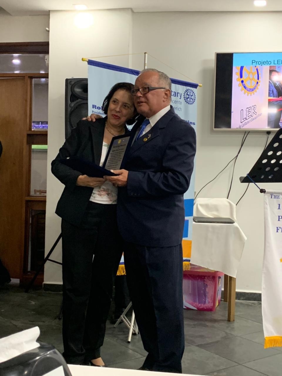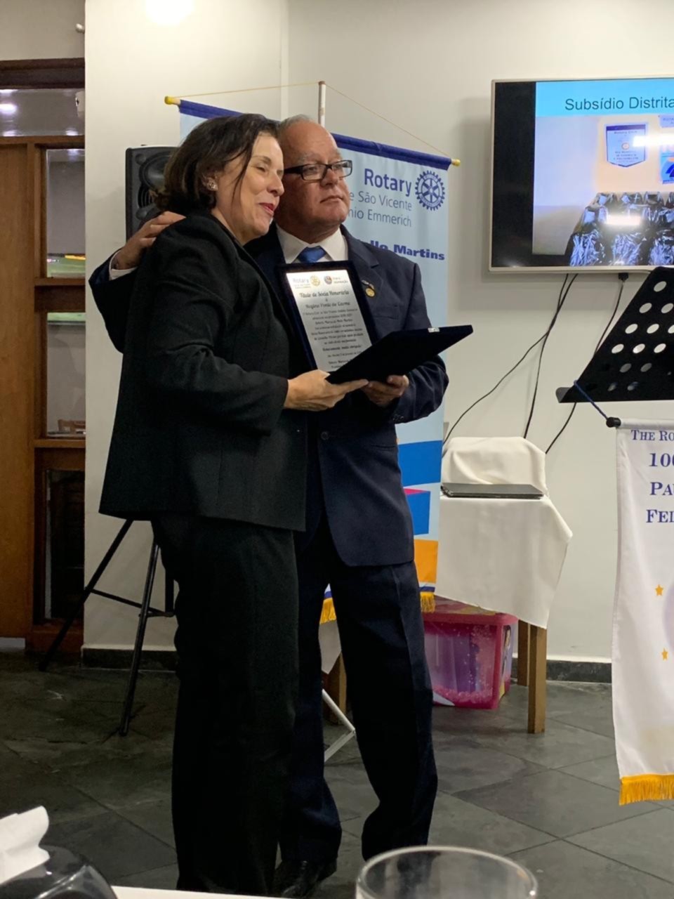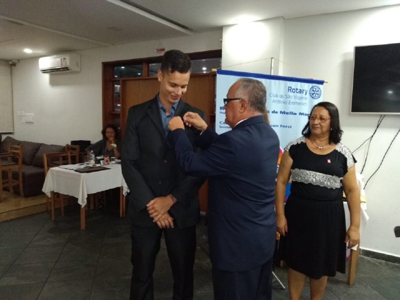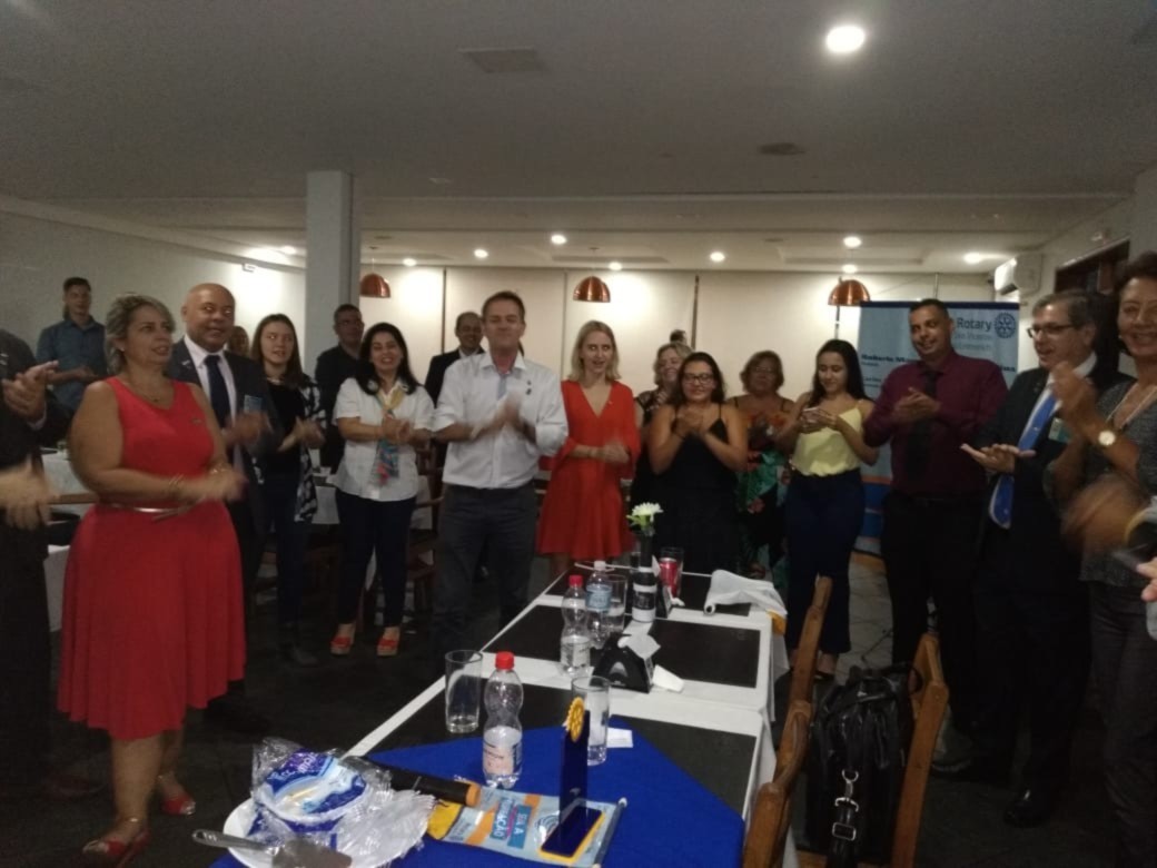 Em noite memorável recebemos a visita oficial do governador Carlos Eduardo Estevan Torci e sua esposa Sônia Mara em sua visita oficial e realizamos a entrega de um Título Paul Harris ao companheiro Kleber Luiz Antônio, tivemos a admissão de um novo sócio o jovem Filipe Fogar e um Título de Sócia Honorária à companheira Regina Ponte do Carmo do RC de São Vicente. A jovem Maria Luiza fundadora de nosso Kids e a jovem intercâmbista da Alemanha Antônia Eberhardt em visita ao nosso clube depois de anos de seu intercambio acompanharam a hoje nossa sõcia Bruna na entreda da bandeira do Rotary Kids.O jantar foi excelente e tudo foi bem comemorado .Importante salientar que tivemos a presença de 95 dos sócios