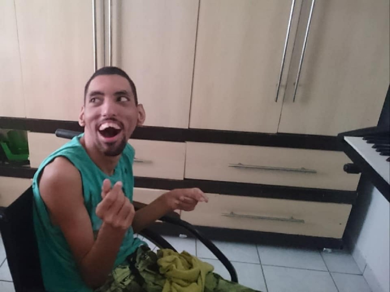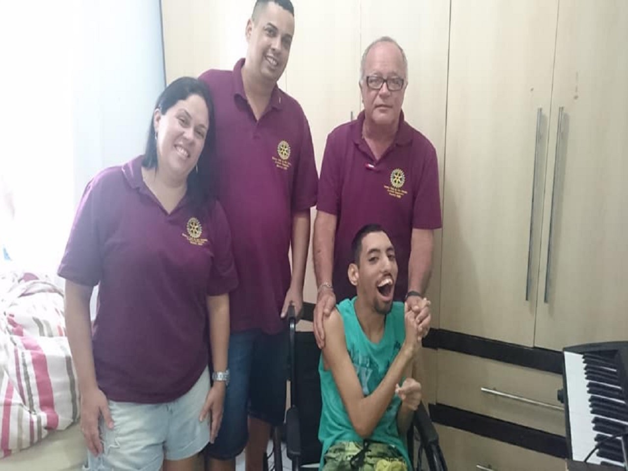 Na quinta feira estivemos na residência do jovem Michael Cley Schneider Bispo que tem dificuldades de locomoção em sua residência e levamos uma cadeira de rodas para tentar amenizar suas dificuldades. Foi de indescritível emoção a alegria dele quando viu a cadeira, distribuiu sorrisos,mandou beijinhos com toda a sua dificuldade, foi muito emocionante ver seu irmão com síndrome de Dow nos agradecendo. Ele imediatamente pediu pra recolherem a cama aonde ele ficava deitado e já se posicionou defronte ao seu aparelho de vídeo game com um sorriso aberto. Obrigado aos companheiros Kleber e Tatiana que nos facilitaram a recuperação desta cadeira e a entrega. Obrigado a Deus por me permitir ainda estar vivo e presenciar momentos como esse