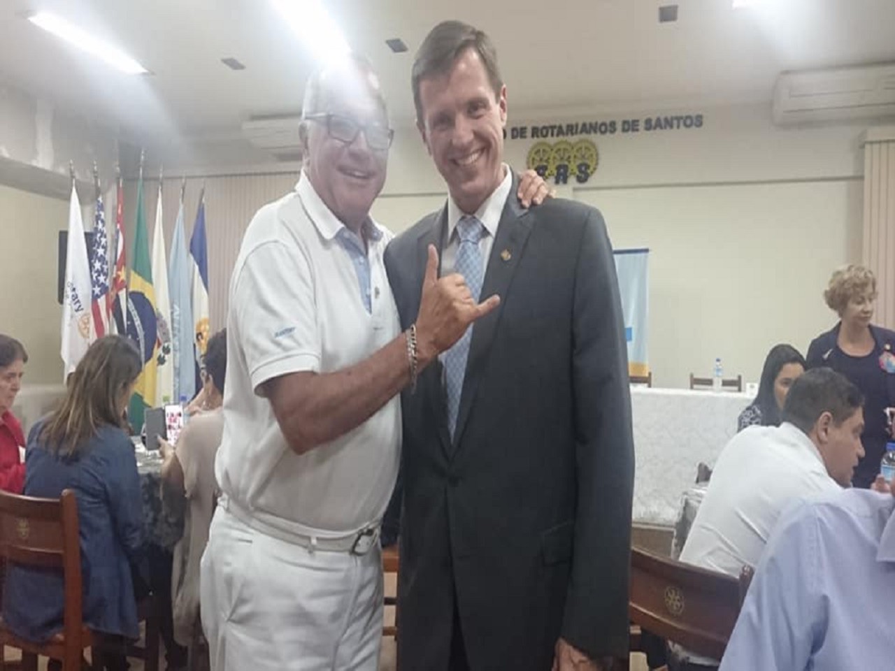 O presidente Roberto Martins representou o nosso clube na reunião conjunta do RC de Santos Monte Serrat e Santos Ponta da Praia receberam o Governador eleito 2019-20 de nosso distrito 4420 para palestra que foi extremamente proveitos e muito agradável.