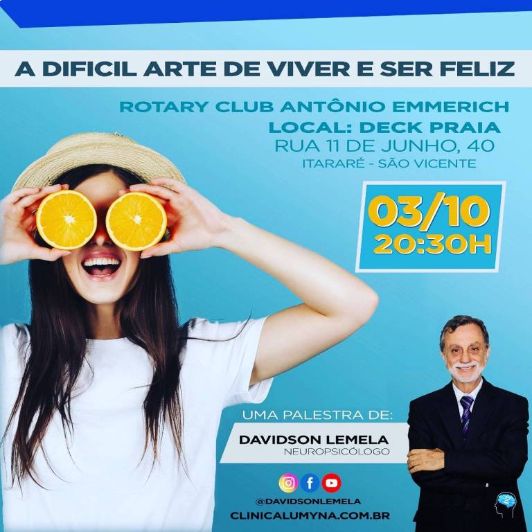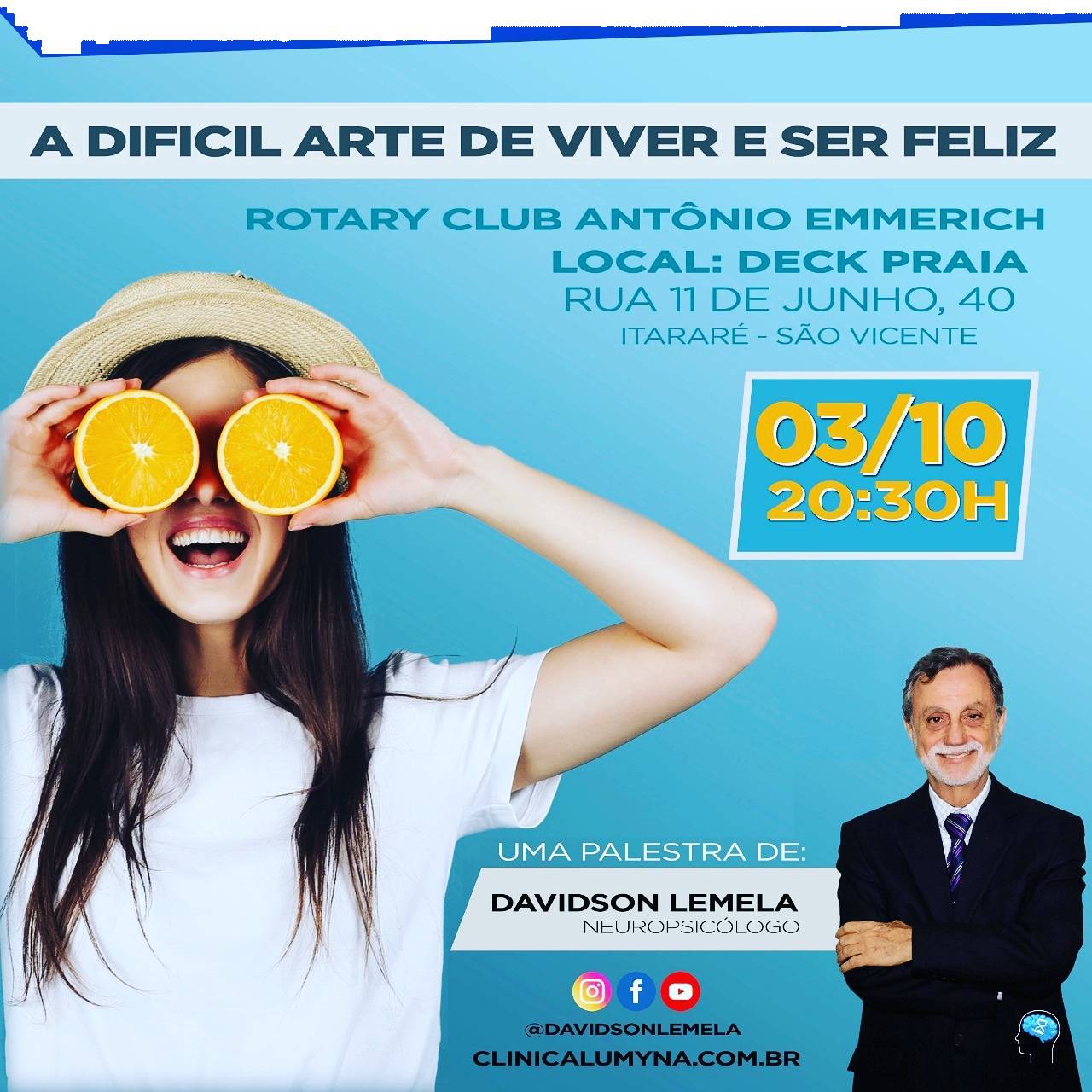 Palestra no dia 03/10/2019 com o Dr. Davidson Lemela sobre " A difícil Arte de Viver e ser Feliz!"